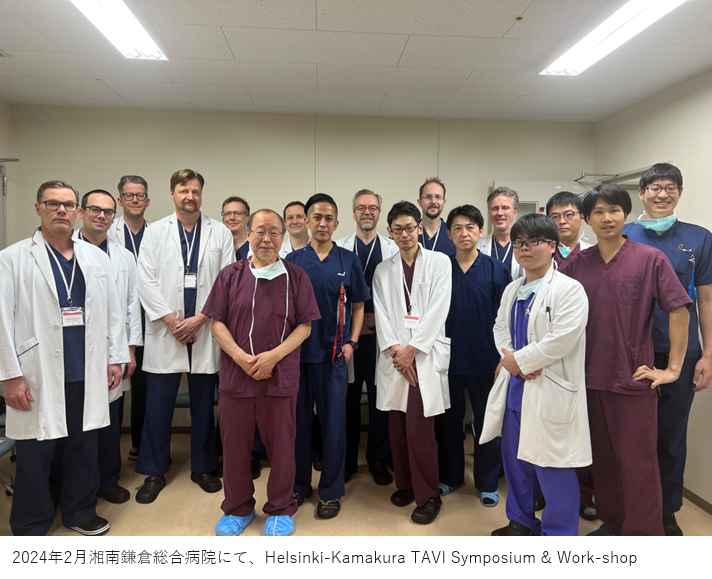 また、このHelsinki大学病院と湘南鎌倉総合病院の”つながり”を後輩に繋げることができたことも一つの喜びでした。私の直後に当院から杉山耀一先生が2年間留学してくれて、現在は佐藤大介先生がヘルシンキで頑張ってくれております。今年の2月にはフィンランド国内の3大学病院から先生方が湘南鎌倉へ来てくださり、TAVIのワークショップを開催することもできました。遠く離れた2施設ですが、これからも良好な関係を継続できるように、活動を継続していく予定です。